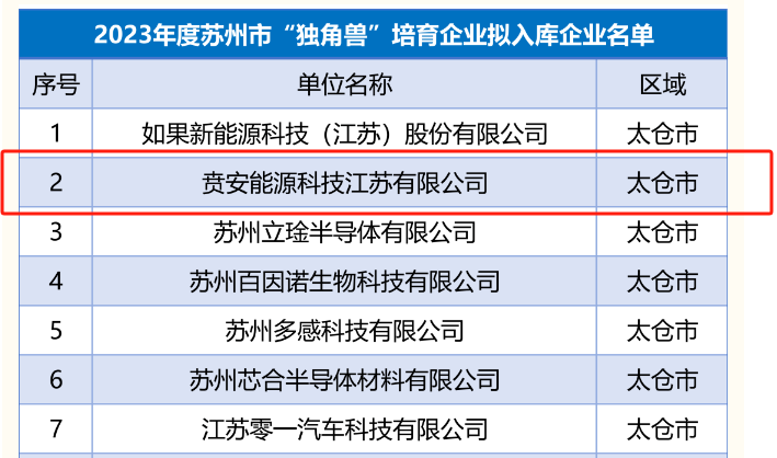 2023年12月27日,苏州市科学技术局对2023年度苏州市"独角兽"培育企业遴选名单进行公示,成立仅两年的贲安能源科技江苏有限公司(以下简称"贲安江苏")凭借雄厚科研实力,顺利入选苏州市"独角兽"培育企业。